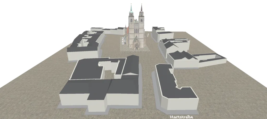 Das Projekt Zweitblick entwickelt seinen Prototypen am Beispiel des Magdeburger Johanniskirchviertels. Das Viertel wurde im Zweiten Weltkrieg nahezu vollständig zerstört und soll mithilfe moderner Technologien digital rekonstruiert erlebbar gemacht werden.